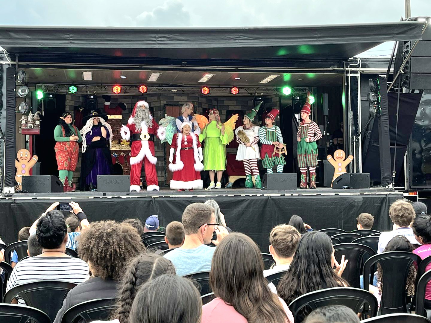 Na Praça Nova Esperança, crianças, jovens e adultos acompanharam o espetáculo infantil “Natal Espetacular”, apresentado pela Cia Ilimitada, além de shows musicais que embalaram a tarde e reforçaram o caráter familiar do evento.