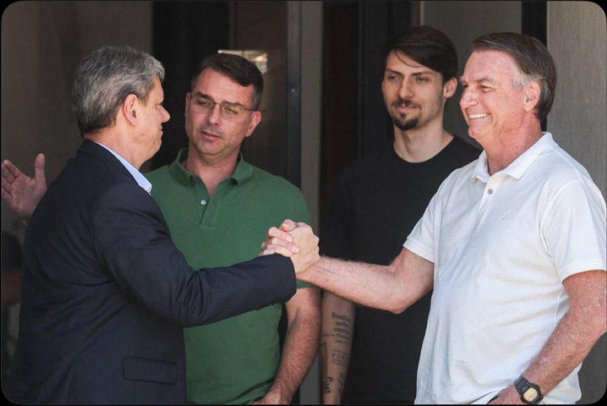 Tarcísio, Flávio e Jair Bolsonaro: clã Bolsonaro sentiu que Tarcísio poderia tirá-lo do jogo sucessório e jogou todas as fichas, estilo "ou estamos juntos ou quebramos tudo"