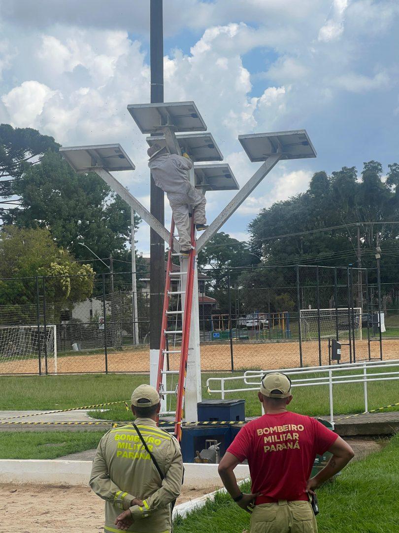 Segundo a corporação, equipes foram acionadas após moradores e usuários da praça perceberem a presença das abelhas próximas aos brinquedos do parquinho. Como medida preventiva, a área foi isolada e o acesso ao local bloqueado.