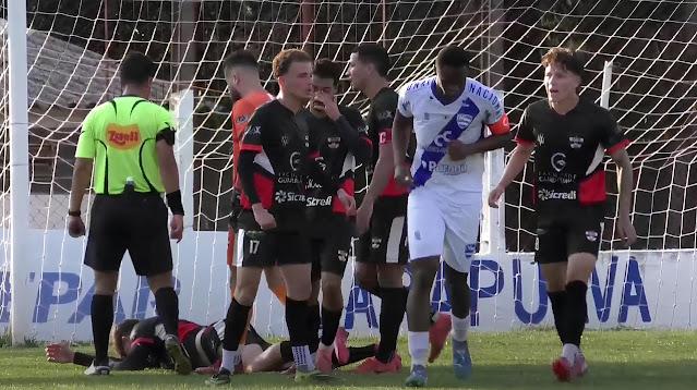 O árbitro Diego Ruan Pacondes da Silva aplicou o protocolo global antirracismo da FIFA, fazendo o gesto de braços cruzados em “X”, o que indica denúncia de injúria racial. A partida foi interrompida por cerca de 18 minutos até o atendimento ao jogador e a chegada de uma nova ambulância.